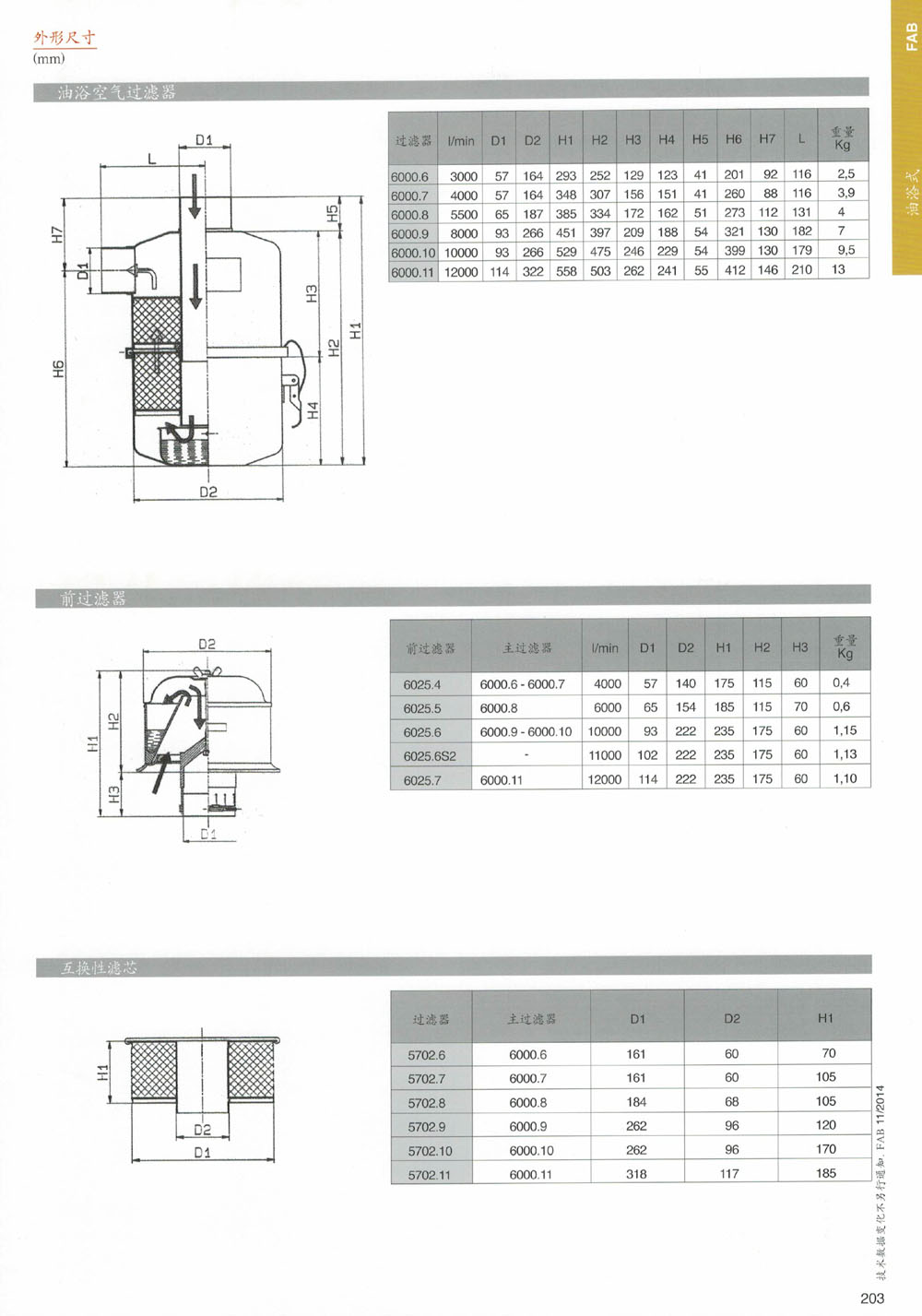 索菲瑪油浴式和旋風(fēng)式空氣預(yù)濾器FAB系列 |